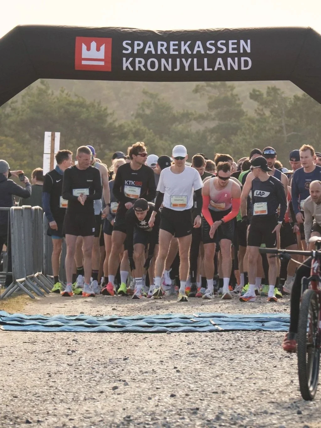 Der vil være spærret af med markeringsstrimmel ca. 10 m foran start indtil 2 minutter før start. Herefter er det tilladt at gå helt frem til startlinjen, som afspærres med endnu en markeringsstrimmel.