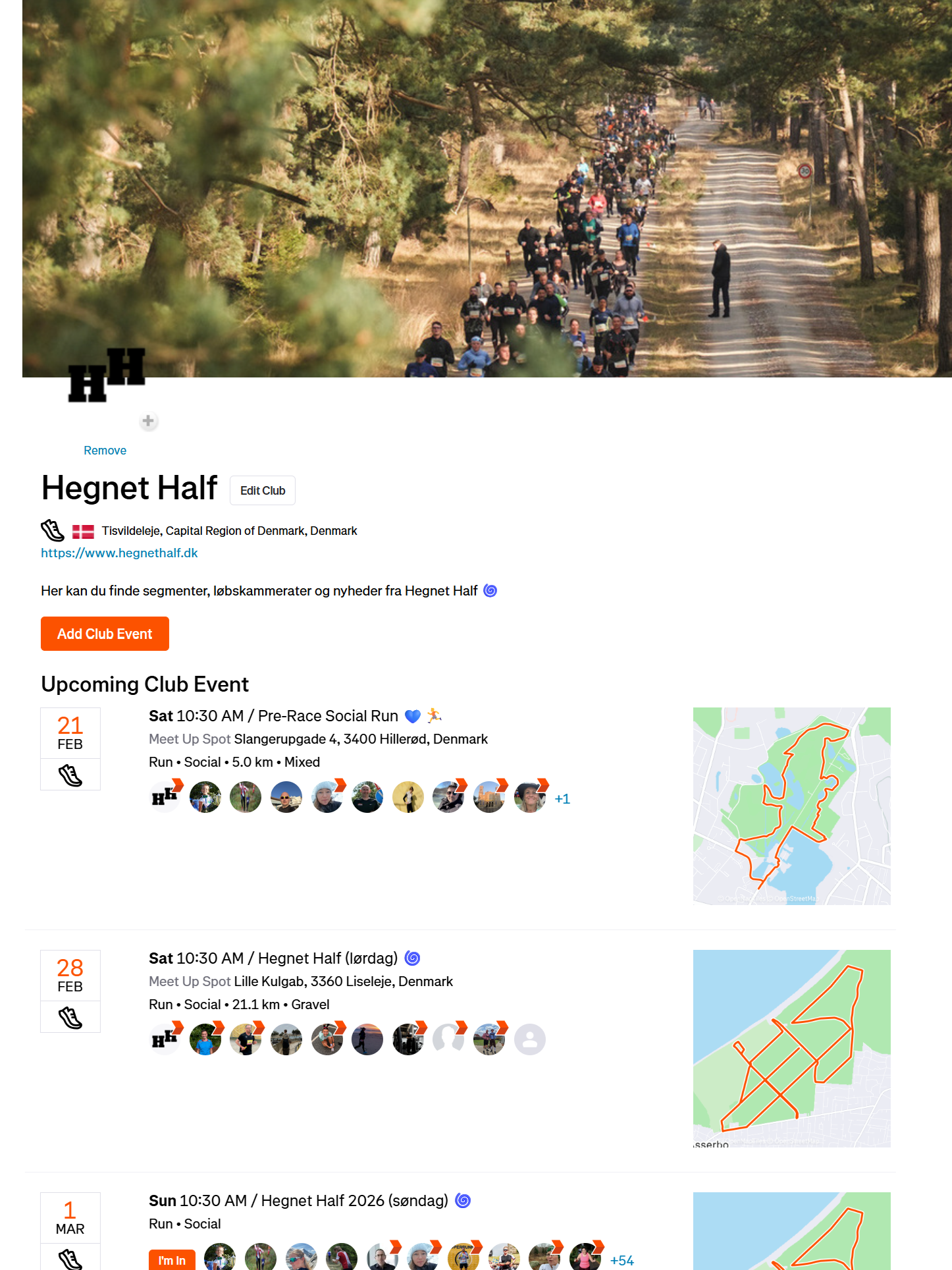 Følg med på vores Strava profil, hvor vi arrangerer løbende andre aktiviteter end Hegnet Half.